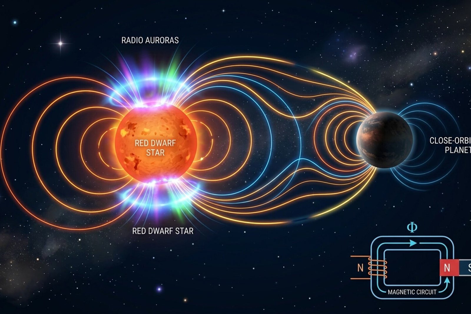 Astronomers found intense radio auroras on a completely quiet star, revealing a hidden Earth-sized planet orbiting through its magnetic…