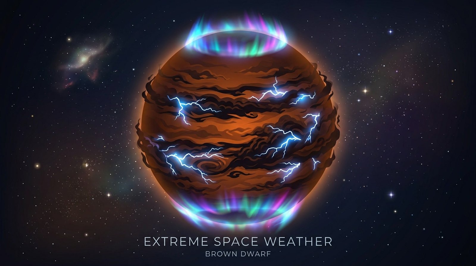 Earth’s auroras are caused by the solar wind slamming into our magnetic field. But brown dwarfs—massive objects floating alone in space, too big to be planets but too small to be stars—have auroras too! Even without a host star blasting them, their internal magnetic fields are incredibly strong. These fields act like particle accelerators, shooting powerful electron beams straight down into their own atmospheres. This creates auroras 10,000 times more intense than the ones on Jupiter. As these electron beams smash into hydrogen gas, they ionize the sky and create a glowing, charged upper atmosphere.