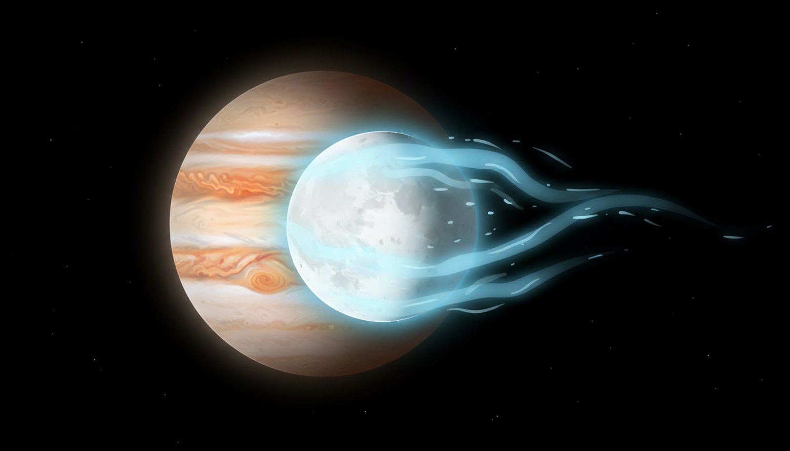 - This phenomenon is a scaled-up version of the interaction between Jupiter and its volcanic moon, Io.